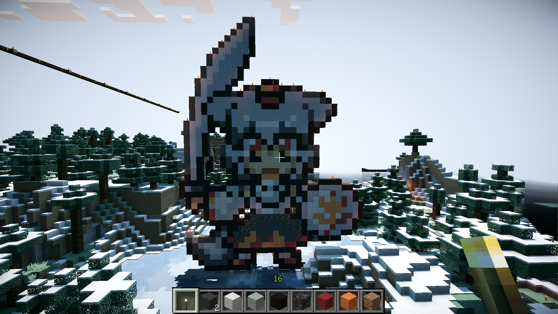 今日はマイクラのサーバーでずっと 椛をドットで描いていましたw
