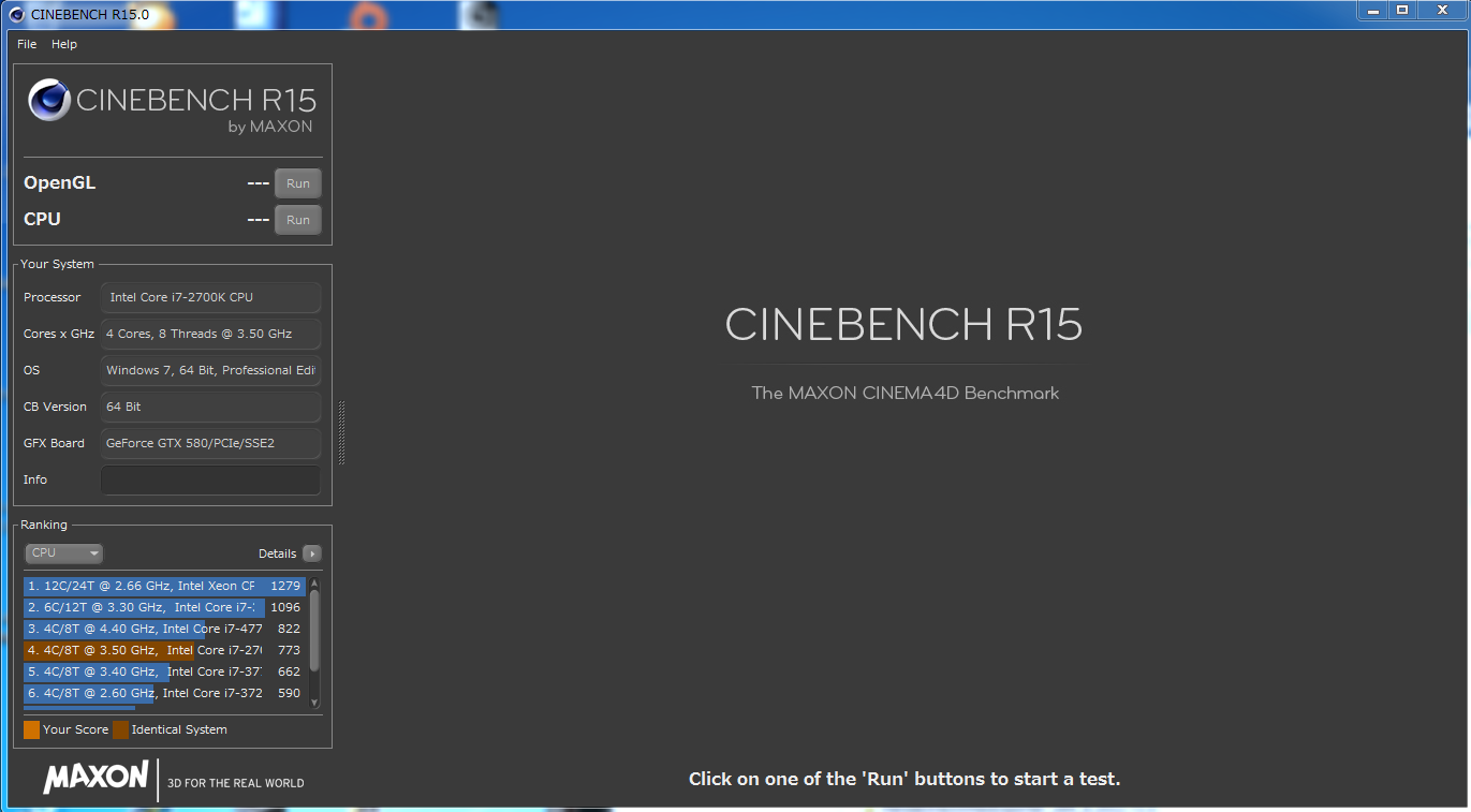 このソフトは、まぁ簡単に言うとCPUの処理速度(レンダリング速度)が見れるって感じです