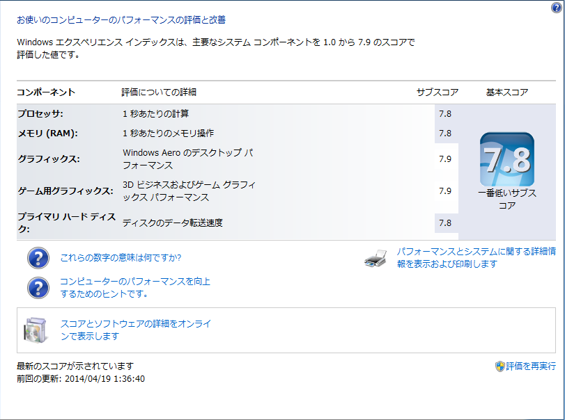 今回は画像はないですがプロセッサとメモリが7.6の評価から7.8になりました!