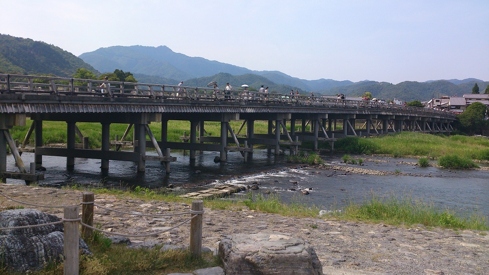 渡月橋です。同じアングルではないですが、アニメでも写真を撮ってましたね^^