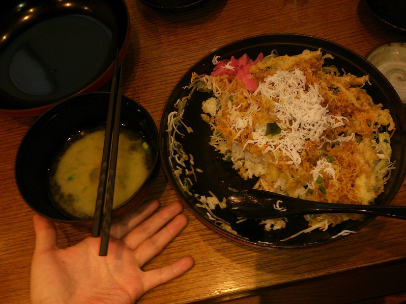 昼飯は江ノ島名物のしらすを使った搔き揚げ丼です。